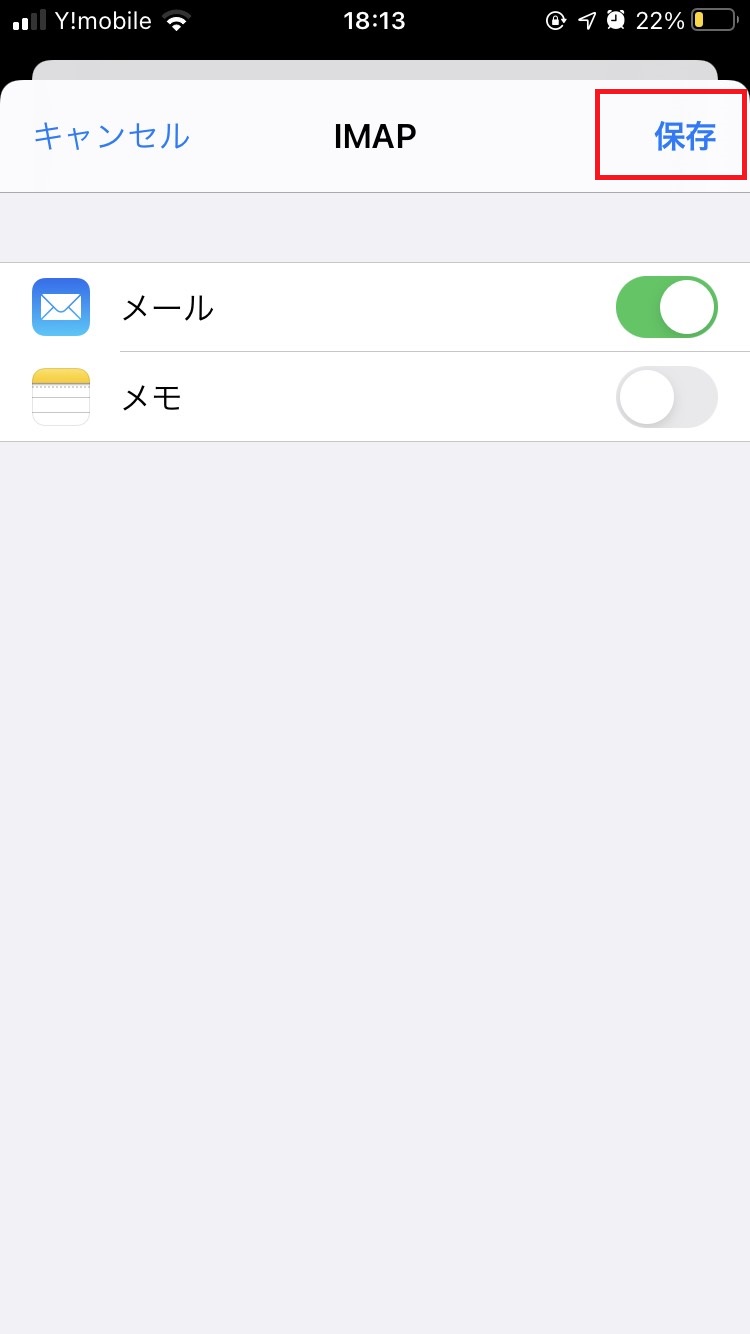 - 「IMAP」が設定されていることを確認します。