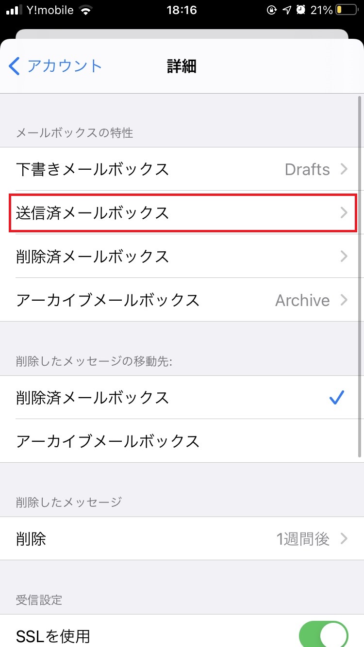 - 「送信済メールボックス」をタップします。
