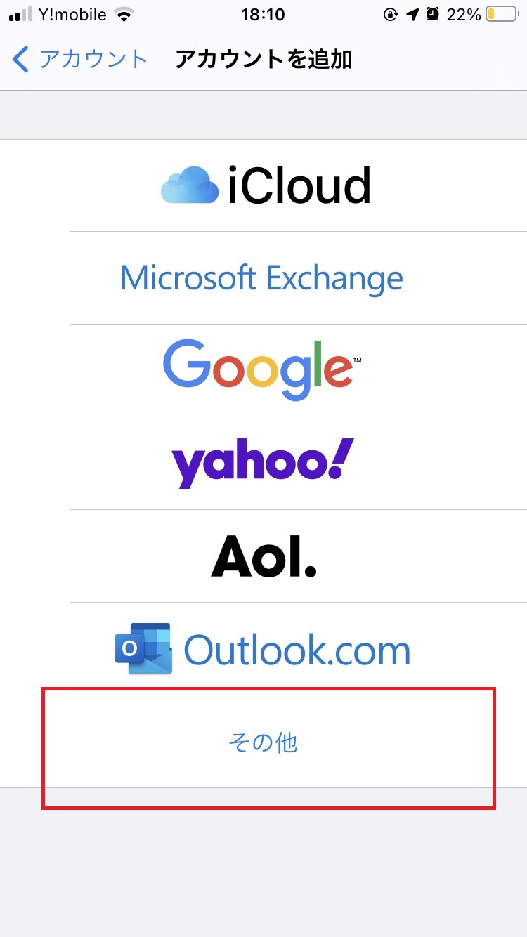 - 「送信済メールボックス」,「削除済メールボックス」が設定されているのを確認し、左上の「アカウント」をタップします。