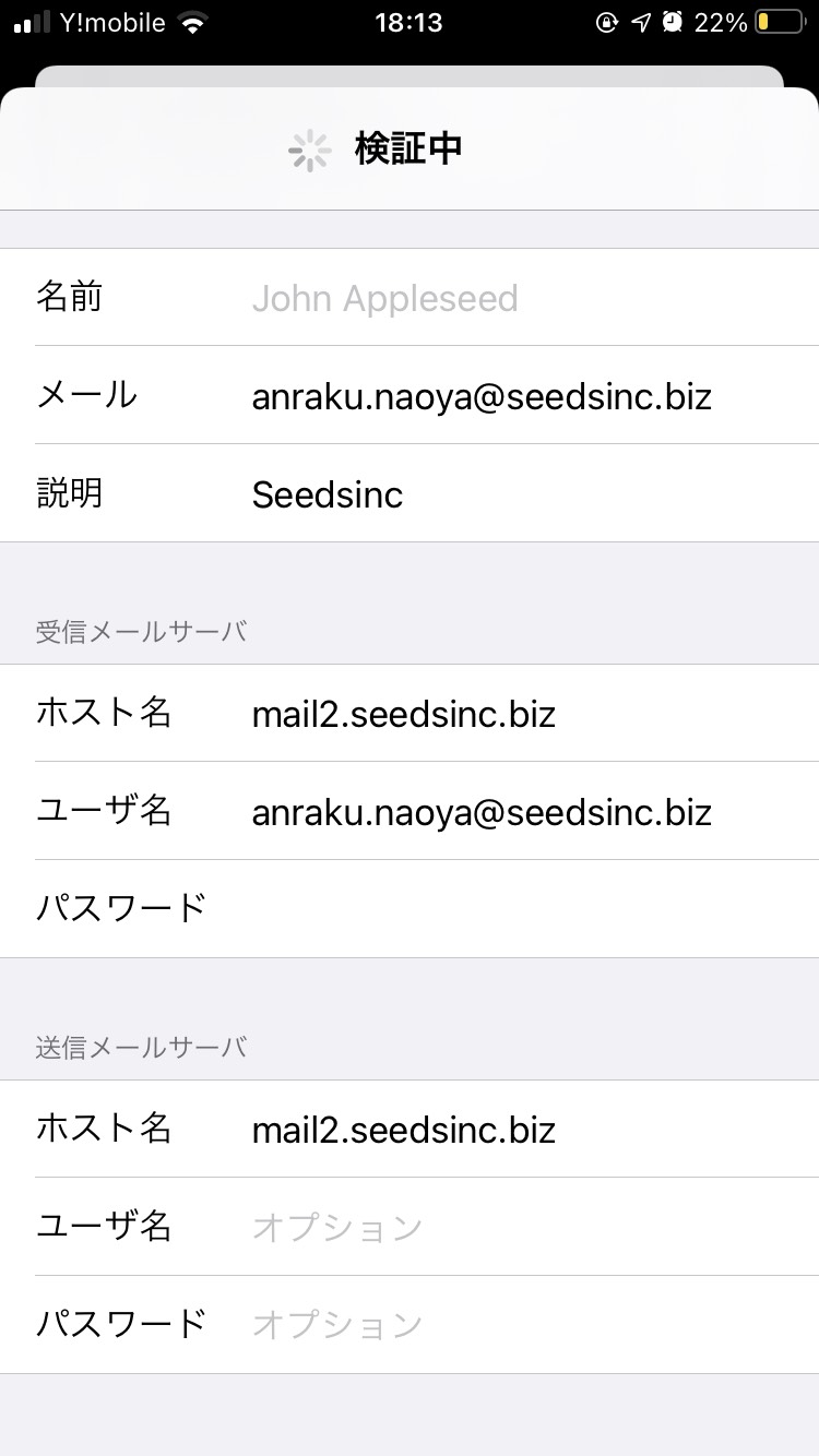 - Seedsメールのアカウントをタップします。※表示名は設定により異なります。
